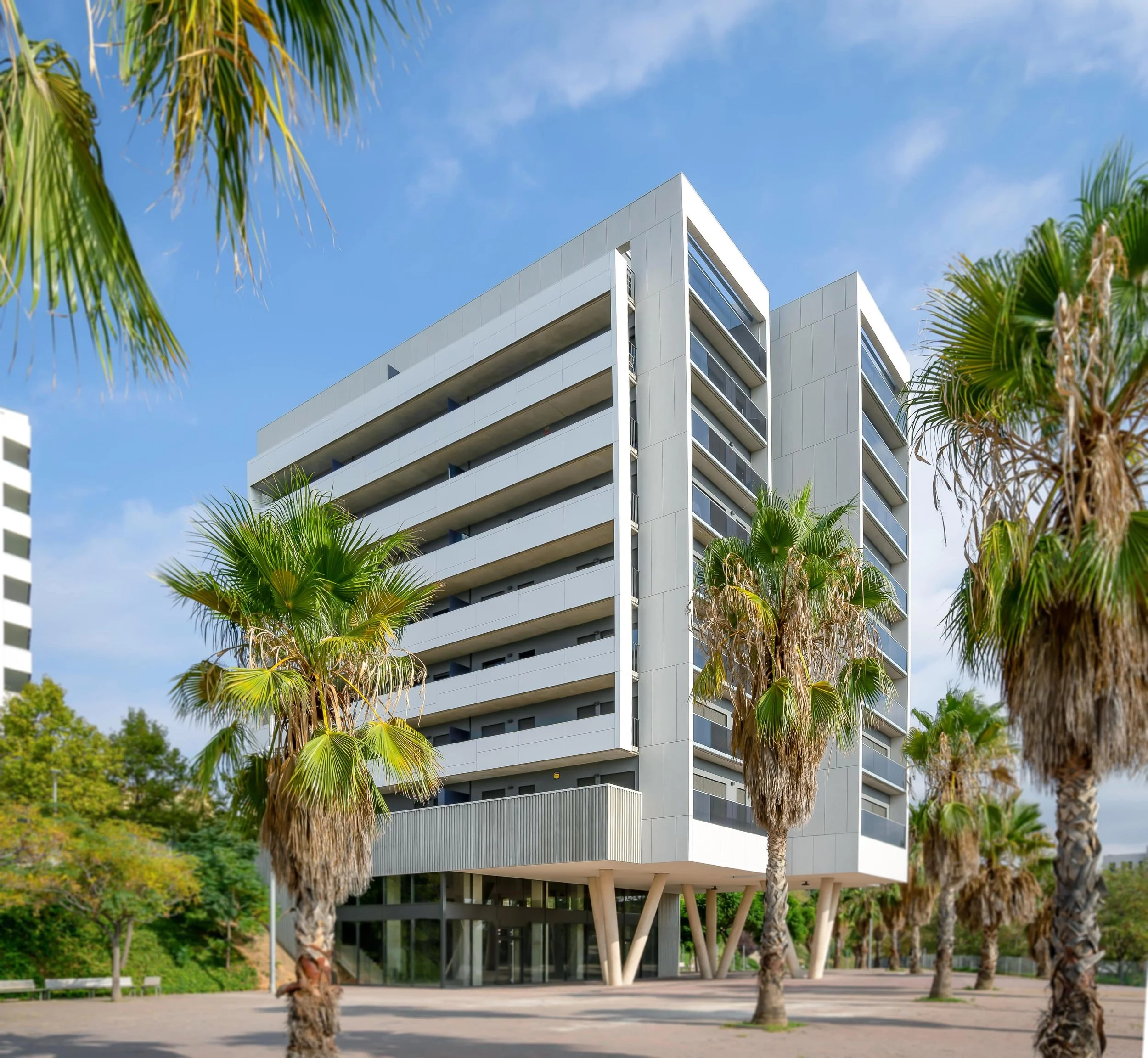 Complejo compuesto por 320 viviendas distribuidas en 10 torres de 12 plantas y un gran zócalo de 3 alturas que las sostiene. El proyecto engloba viviendas dúplex, amplias zonas comunitarias y un gran centro comercial en su base. Encargo de Batlle i Roig Arquitectes, con la DEO de Oriol Marin.