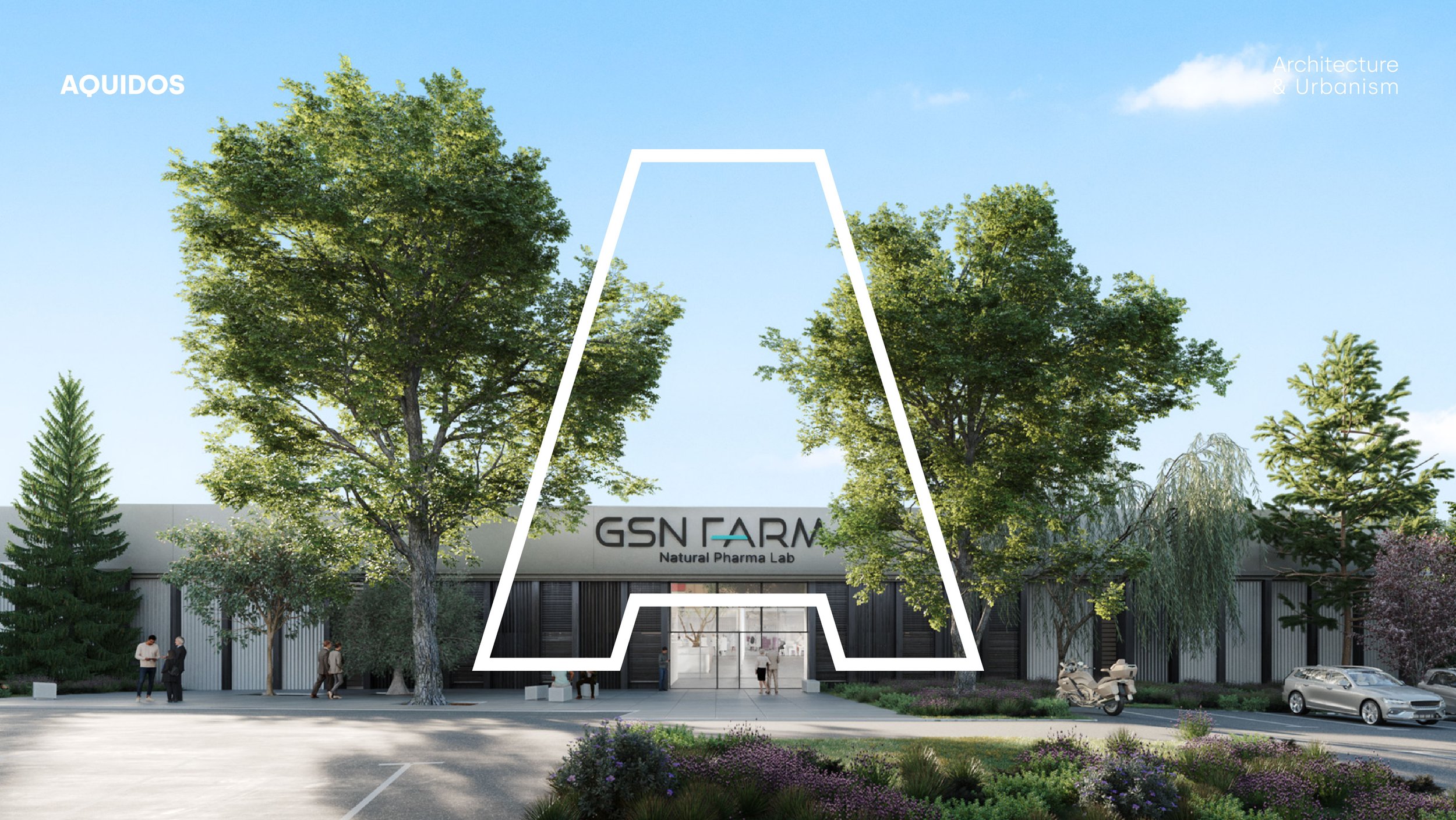 L’actuació també inclou la remodelació dels espais exteriors, amb una proposta que equilibra funcionalitat i sostenibilitat. Un eix pavimentat organitza l’accés i divideix l’espai entre les zones verdes amb pèrgola i el pàrquing. Es reutilitza l’arbrat existent i es complementa amb la plantació d’espècies amb propietats medicinals, en línia amb la filosofia de la companyia. A més, la pavimentació drenant afavoreix la gestió sostenible de l’aigua de pluja i redueix l’impacte ambiental de la intervenció.